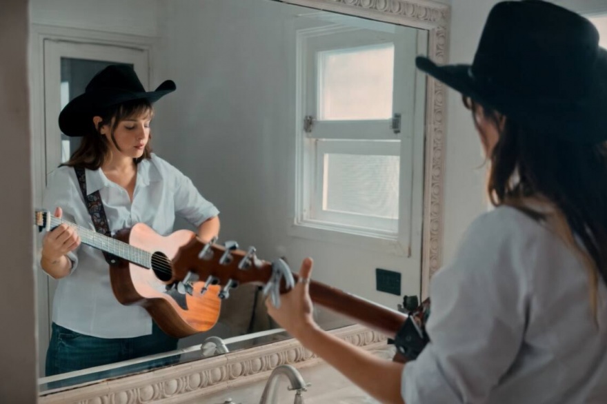 En el visual vemos a Vale frente al espejo, en un baño, atravesando pequeñas escenas que se sienten cercanas: acomodándose la ropa, mirándose en detalle, probando gestos, como si buscara respuestas en su propio reflejo. En un momento toma un espejo de mano, en otro se suma la guitarra, y todo termina armando una especie de diálogo con ella misma, entre lo cotidiano y lo que no se dice en voz alta.